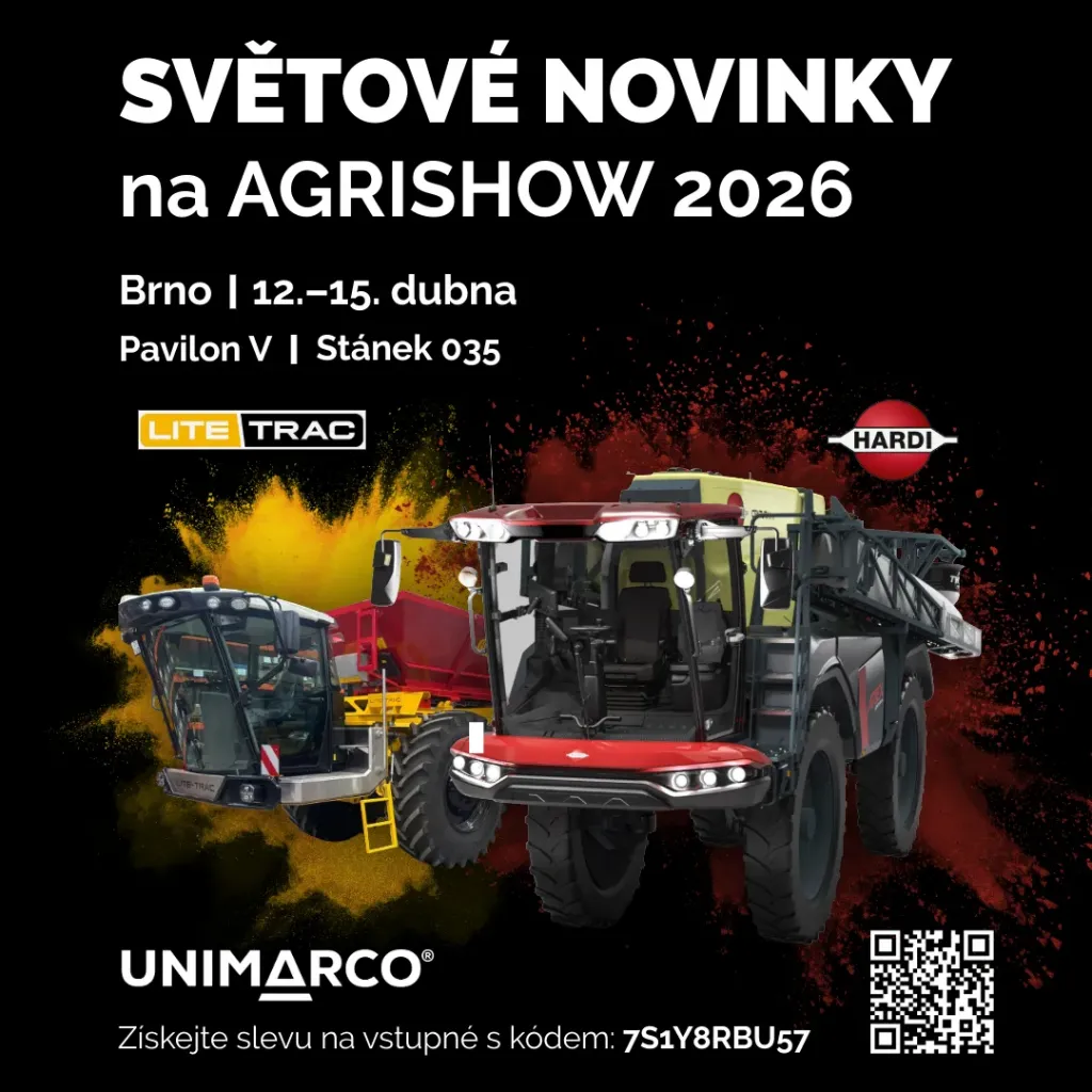 Ve dnech 12.–15. dubna 2026 vás zveme na výstavu AGRISHOW 2026 v Brně, kde vám představíme techniku, která pomáhá pracovat přesněji, efektivněji a s maximálním využitím každého stroje.