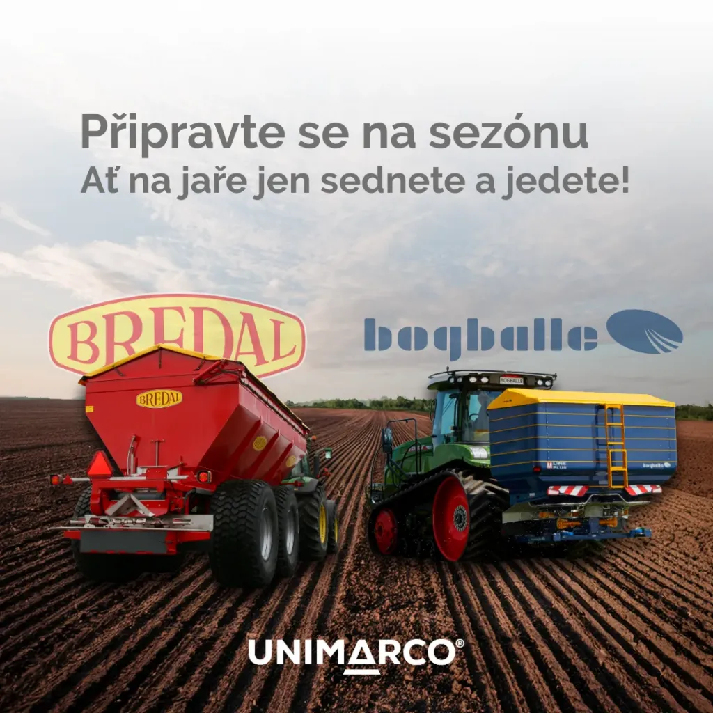 Společnost UNIMARCO se dlouhodobě specializuje na rozmetadla BREDAL a BOGBALLE a nabízí jak náhradní díly, tak zvýhodněnou posezónní a předsezónní prohlídku rozmetadel.