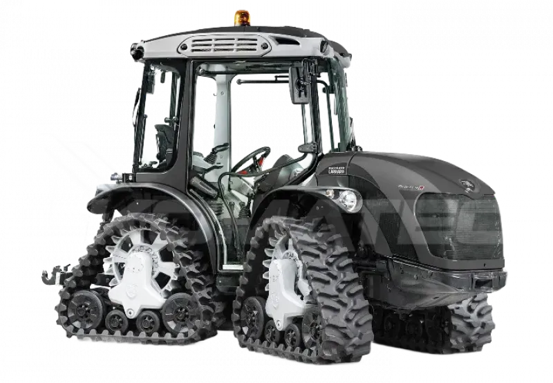 MACH 4 8900 R je plnopásový AC pro místa, kde kolové traktory končí: prudké a boční svahy, těžký terén, sníh, bláto či sypké podklady. Gumové pásy zvyšují přilnavost a snižují zhutnění půdy; stroj se doslova „vznáší“ nad terénem. Díky RGS™ (otočné pracoviště) je extrémně obratný i ve stísněných prostorech – ostré zatáčky bez ztráty trakce. Pásový podvozek je doplněný o komfort konvenčního traktoru (prostorná kabina, místo pro nohy, ergonomie + volitelný JCM™ joystick). Přetlaková kabina Kat. 4 chrání při postřiku a stroj je homologovaný až na 40 km/h pro přesuny.