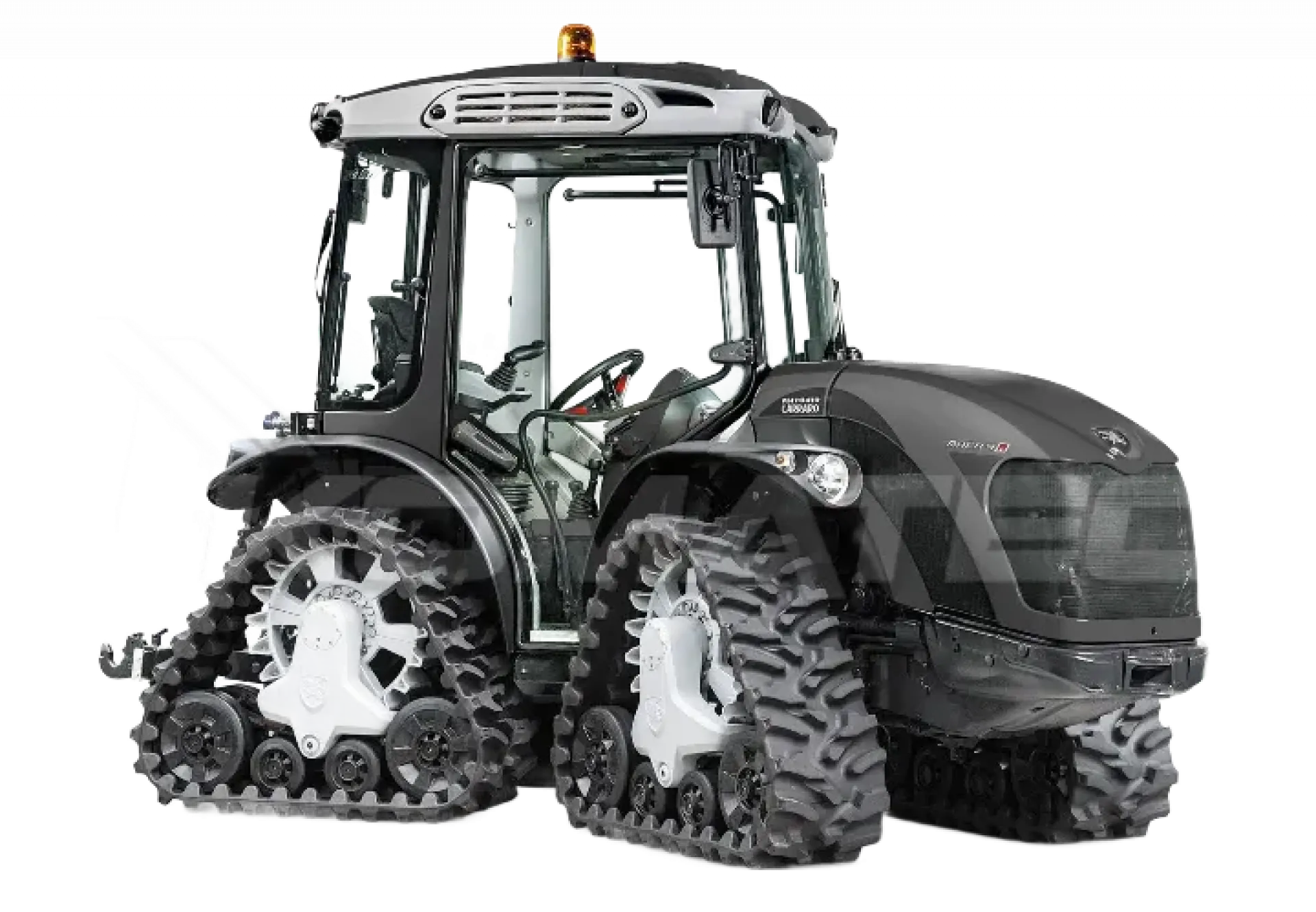 Čtyři gumové pásy do extrémních podmínek – stabilita, „plavnost“ a komfort běžného traktoru, homologace až 40 km/h.