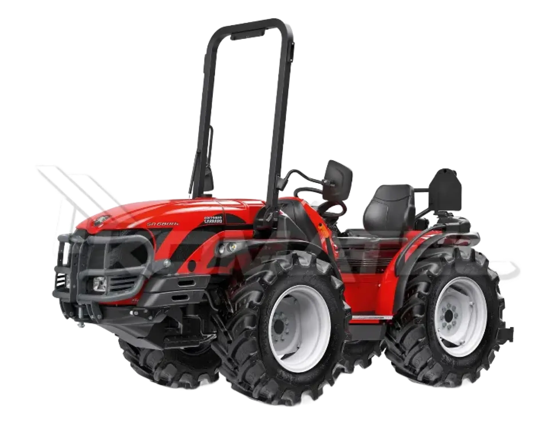 SN 6800 V je stavěný na nejužší vinice a intenzivní sady. Kloubové řízení a kompaktní šířky dávají extrémní obratnost mezi oporami a kmeny, ACTIO™ rám kopíruje terén, zatímco RGS™ otočí celé pracoviště řidiče o 180° – stejná ergonomie vpřed i vzad zrychluje přechody mezi čelní a zadní agregací. Synchronní převodovka 16+16 s PTO 540/540e a elektrohydraulikou (uzávěrky diferenciálů, vypínání předního náhonu) dává přesný a bezpečný záběr i ve svazích a stísněných místech.