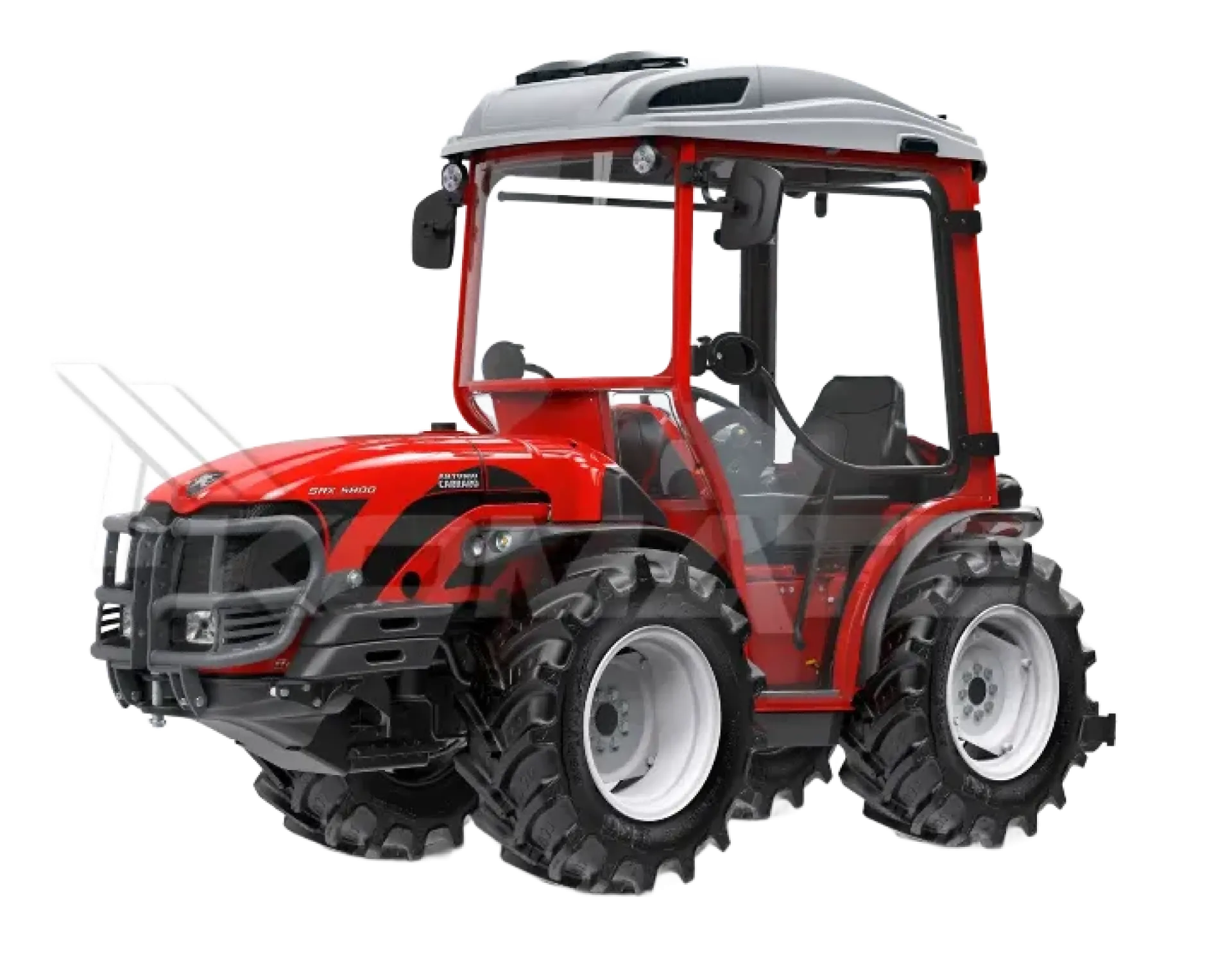SRX 5800 je kloubový izodiametrický traktor nové generace TORA (střední výkonnostní třída). TORA klade důraz na efektivitu (správný výkon pro daný úkol, nízkou spotřebu a náklady), modernizovanou hydrauliku a komfort obsluhy. Kloubové řízení a úzký profil dělají ze SRX „chirurga meziřadí“ – přesně vede nářadí v těsném prostoru, kopíruje řádky a manévruje kolem kmenů i sloupků bez zbytečných přejezdů. ACTIO™ rám zajišťuje kontakt všech kol, RGS™ otočí pracoviště pro rychlou změnu směru práce a plynulé vedení čelních i zadních adaptérů. Převodovka 16+16 se synchrony (s reverzem) nabízí jemné odstupňování pro postřik, kultivaci i mulčování.