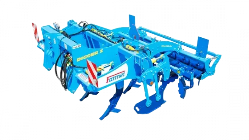 DIGGER je určený pro hluboké prokypření nepropustné vrstvy půdy, urovnání a jemné zpracování hrud. Díky nízkému tahovému odporu radlic umožňuje vysokou pracovní rychlost až 12 km/h.