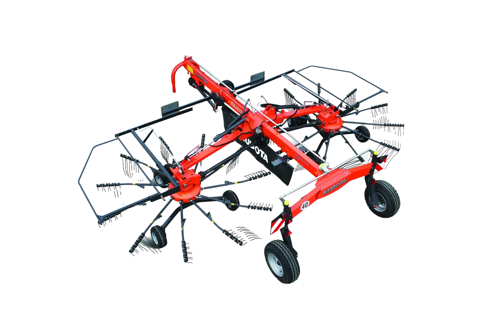 Dvou rotorový shrnovač Kubota RA2072 je výkonný dvourotorový stroj určený pro efektivní shrnování pícnin do pravidelných a dobře tvarovaných řádků. Díky pracovnímu záběru 6,20–7,20 m, robustní konstrukci a spolehlivé převodovce rotorů CompactLine nabízí vysokou pracovní výkonnost, kvalitní formování řádků a dlouhou životnost i při intenzivním používání.