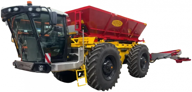 Samojízdný nosič nástaveb LITE-TRAC LTV3000 s rozmetací nástavbou BREDAL K135XE-SC představuje univerzální řešení pro moderní zemědělství.